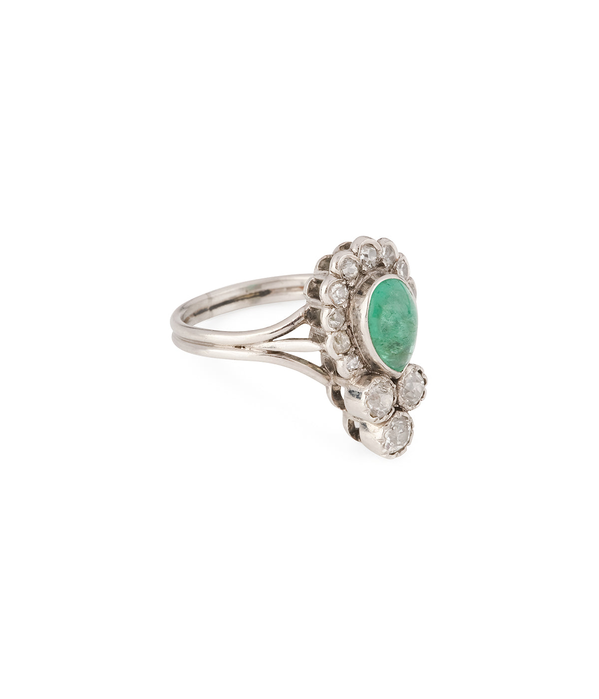 Bague Duchesse ancienne en émeraude et diamants "Paavo"