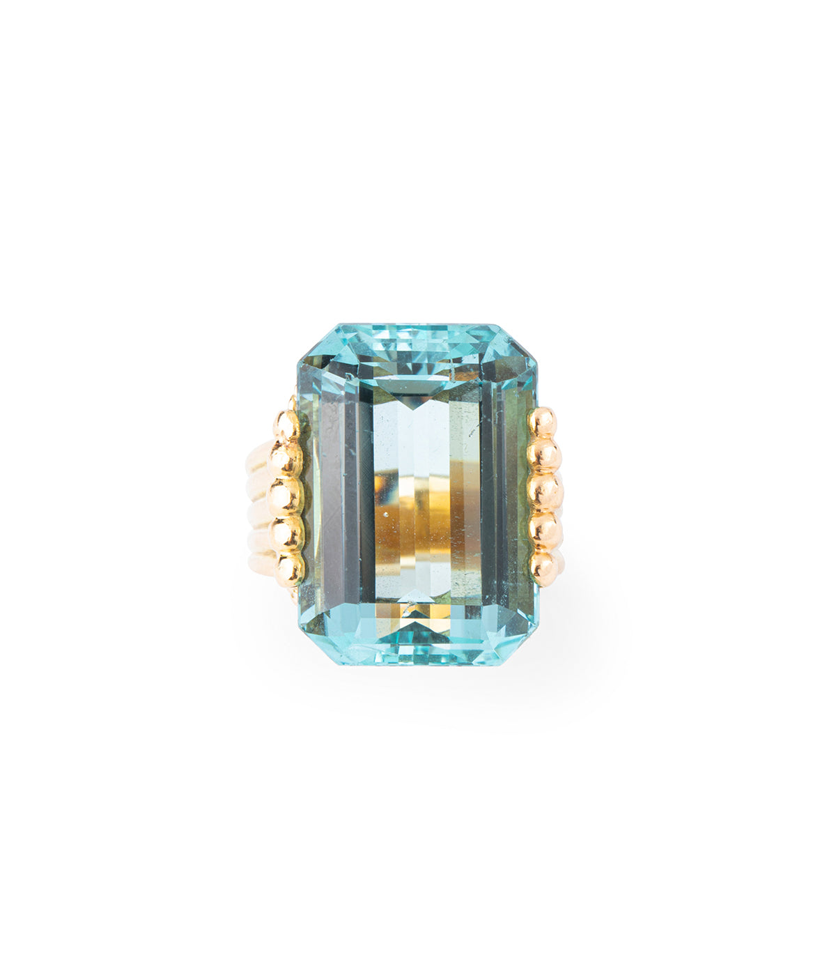 Bague cocktail en or 18 carats (750 millièmes) des années 50, ornée d'une importante aigue-marine d'env. 24,5 carats.