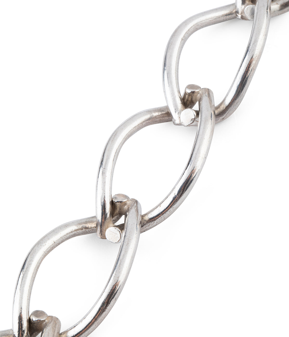 Bracelet ancien en argent des années 50, à grosses mailles fantaisie.